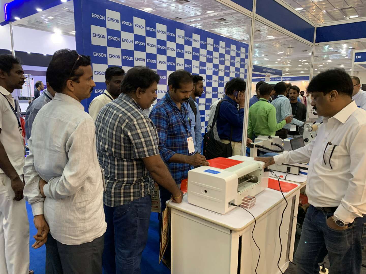 6/14-16日, 联强集团赴印度金奈参加 Print Expo, 展出了公司最新研发的UPG -1A数码打印设备和爱美多小型数码烫金设备。