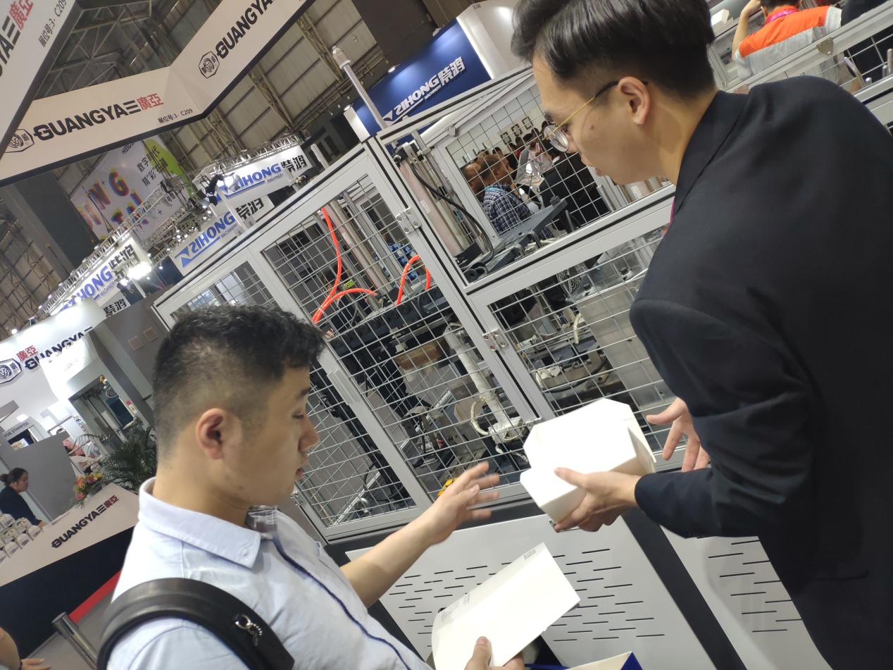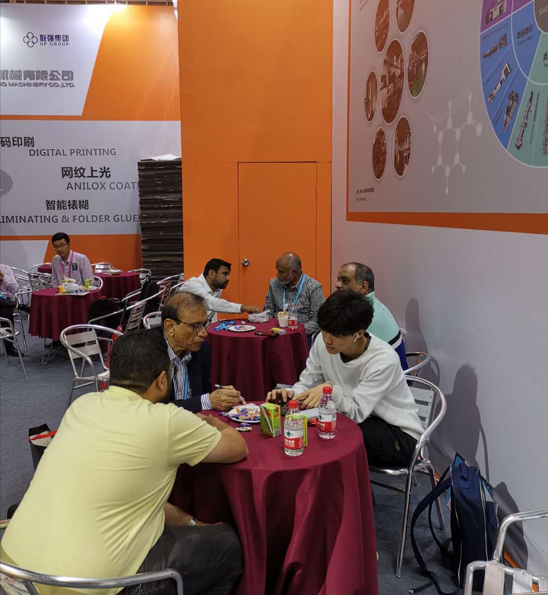 4月中旬,联强集团陪同印尼客户一起赴东莞参观全印展,主要参观了汉堡盒机,柔印机,制版机等。并且参观了多个展馆,多方面了解了光油、预涂膜等耗材,以及覆膜机、上光机、柔版印刷机等设备。