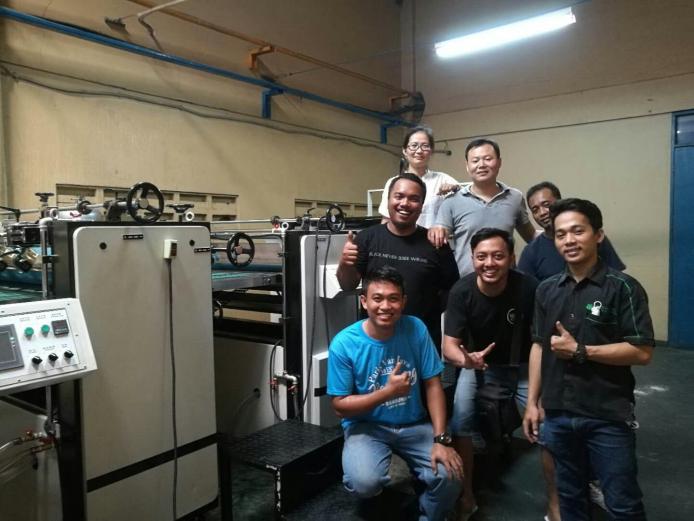 2018.05.09~2018.05.14,我司出口至印尼市场的UV上光机顺利安装,机器运行稳定,客户对做出的产品表示十分满意。